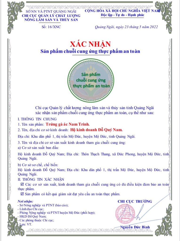 Anh Đỗ Quý Nam sinh ra tại Thôn 4 – Đức Tân – Mộ Đức theo tiếng gọi về Quảng Ngãi lập nghiệp. Mô hình chăn nuôi Gà Ác đẻ trứng còn mới mẻ của địa phương và có nhiều tiềm năng phát triển kinh tế trong lĩnh vực chăn nuôi. Từ lâu, Trứng gà là nguồn thực phẩm bổ sung dinh dưỡng dồi dào, cung cấp một lượng lớn vitamin và khoáng chất, xuất hiện hầu hết các bữa ăn gia đình trên toàn thế giới. Trứng gà có thể chế biến được rất nhiều món ăn và việc dự trữ trứng gà trong tủ lạnh là thói quen của đa số các bà nội trợ. Đến nay đàn gà của tôi lên đến 4.000 con đáp ứng được nhu cầu của thị trường trong và ngoài tỉnh. Tôi thấy gà ác nuôi theo hướng sinh học có nhiều lợi thế hơn: Gà ít khi bị bệnh, tăng trọng tuy không nhanh nhưng gà bố mẹ rất khỏe mạnh, gà mái đẻ sai, đều. Trứng gà ác có tác dụng rất tốt cho mẹ bầu, thị lực và giúp giảm lượng mỡ trong máu.